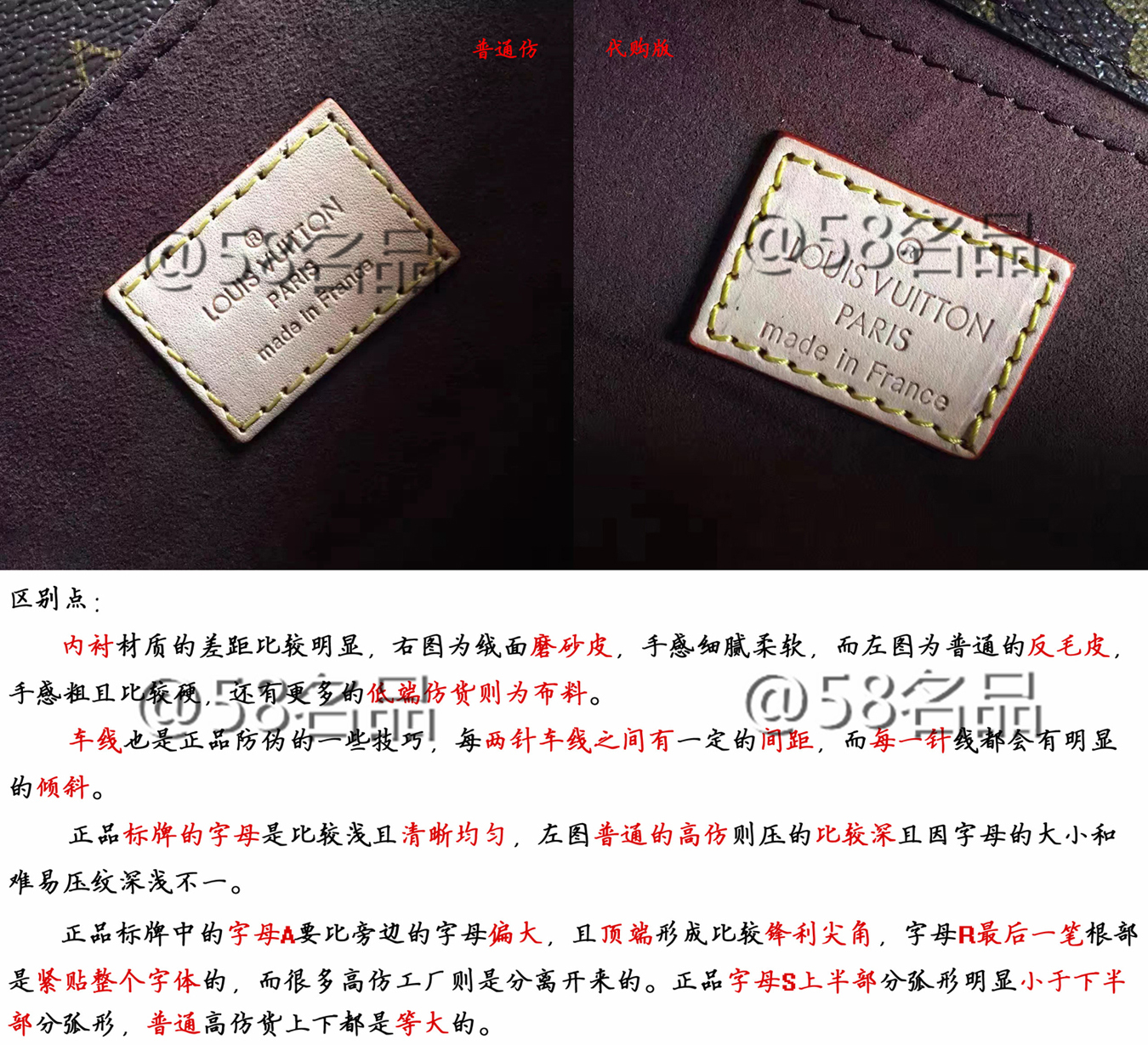 从LV字体上看,正品LV包包及一比一品质的高仿LV包包上的字体非常清晰,圆浑,而假LV包包上的字体清晰度不高,字体偏大,字母的距离较窄从...